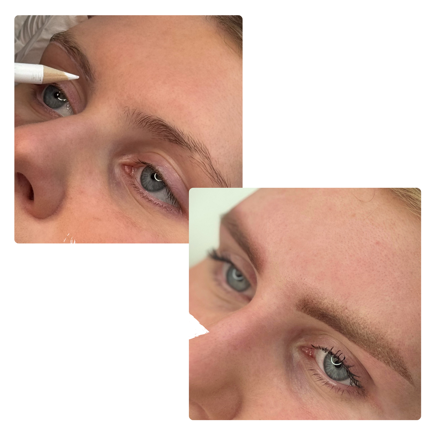 Die Brauen werden präzise vermessen und vorgezeichnet, um ein symmetrisches und harmonisches Ergebnis zu garantieren.